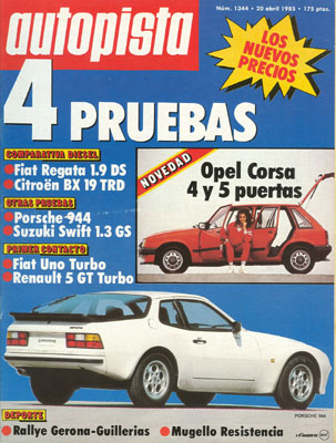 Prueba Comparativa: Fiat Regata 1.9 DS/Citroën BX 19 TRD. Prueba del Suzuki Swift 1.3 GS. Europeo de Turismos. Banco de Pruebas del Porsche 944. Rallye Safari. Rallye Girona-Guilleríes.