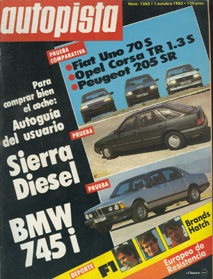 Prueba Comparativa: Fiat Uno 70 S/Opel Corsa TR 1.3 S/Peugeot 205 SR. Prueba del BMW 745i. Presentación del Opel Corsa SR y Berlina. Banco de Pruebas del Ford Sierra 2.3 Diesel. Campeonato de Europa de Históricos.