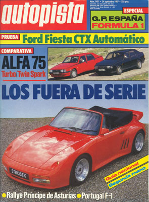 Banco de Pruebas del Ford Fiesta CTX. Los fuera de serie del Salón de Francfort. Publicidad del Renault Alpine V6 GT Turbo. Comparativa: Alfa Romeo 75 Twin Spark/Alfa Romeo 75 1.8 Turbo. Gran Premio de Portugal de F1. Campeonato de Europa de Rallyes.