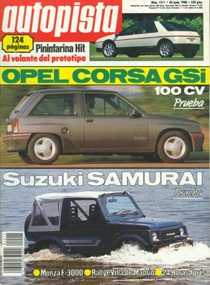 Pininfarina HIT. Banco de Pruebas del Suzuki JX 413 Samurai. Banco de Pruebas del Opel Corsa GSi. Publicidad del Contac Super 12. Banco de Pruebas del Lancia Prisma 1.5 LX. Camiones decorados. Peugeot 405 T16 "Pikes Peak". Entrevista con Adrián Campos. Rallye de Orense. Rallye Villa de Madrid. 24 Horas de Yprès.