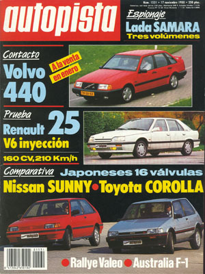Banco de Pruebas del Renault 25 V6 Inyección. Prueba Comparativa: Nissan Sunny GTi 16v/Toyota Corolla GTi. Copa de España de Rallyes. Rallye Valeo. Gran Premio de Australia de F1.