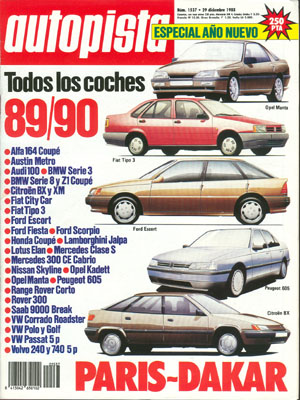 Los coches '89/'90. Banco de Pruebas del Opel Vectra 1.6 GL. Prueba Comparativa: Lada Samara/Seat Ibiza 1.2. París-Dakar.