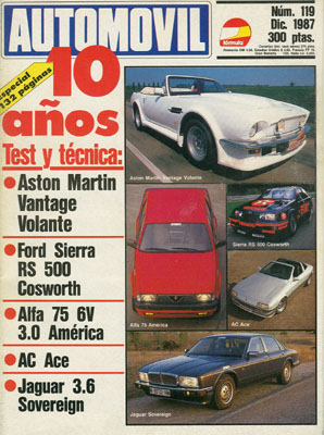 ESPECIAL 10º ANIVERSARIO. Prueba del Aston Martin Vantage Volante. Prueba del AC Ace. Arturo Andrés prueba el Alfa Romeo 75 6V 3.0 América. Prueba del Jaguar Sovereign 3.6. París-Dakar '88. Prueba Racing del Ford Sierra RS 500 Cosworth 460 CV. Fórmula 1: Australia y Japón. Entrevista a Carlos Sainz y Antonio Boto. 40 años Ferrari.