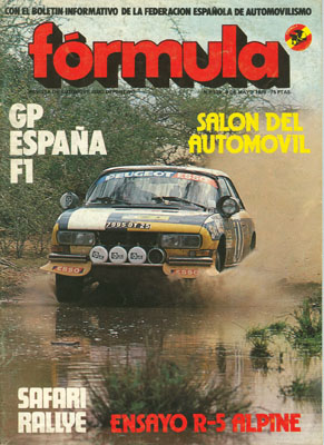 Contacto. Consultorio. Silverstone F-1. Cto. Europeo F-2: Hockenheim y Thruxton. Salón del Automóvil de Barcelona. Cto. de España de F-1800: 2ª prueba (Jarama). Prueba del Renault 5 Alpine. Cto. de España de Montaña: Arrate. Gran Premio de España de F-1. Campeonato Europeo de Rallies. Salvador Fábregas y el Circuito de Catalunya. Avance Rallye 500 km Nocturnos (Alicante). Cto. Mundial de Rallies: Safari. Miscelánea Nacional. Cto. Mundial Sport: 4 Horas Monza.