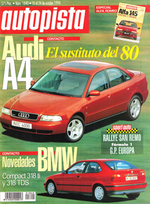 Prueba Comparativa: Hyundai Accent 1.5 GLS Full/Seat Córdoba 1.8 GLX/Hyundai Lantra 1.8 GT 16v/Seat Toledo 2.0 GLX. Suplemento especial de 16 páginas sobre el Alfa Romeo 145. Prueba del Mitsubishi Space Wagon 2000 GLXi. Rallye San Remo. Gran Premio de Europa en Jerez.