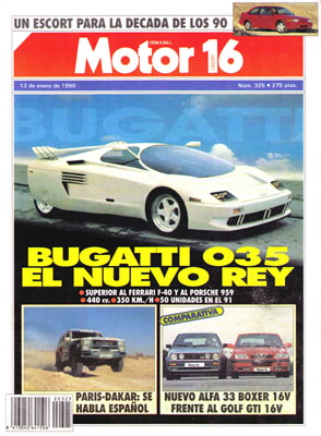 Bugatti 035. Prueba Comparativa: Alfa Romeo 33 Boxer 16v/Volkswagen Golf GTi 16v. Prueba Comparativa: Renault Express GTL/Citroën C15 Club. J.J. Cobas 125 c.c. Rally París-Dakar.
