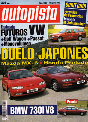 Porsche 944 Schulz Pick-up. Prueba Comparativa: Honda Prelude 2.3i 4WS/Mazda MX-6 V6 4WS. Prueba del BMW 730i V8. Visita a Toyota Team Europe.