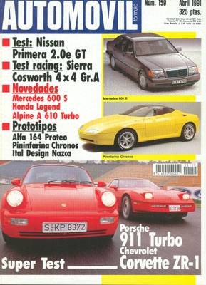 Prueba Comparativa: Chevrolet Corvette ZR-1/Porsche 911 Turbo. Prueba del Nissan Primera 2.0e GT. Rallye de Suecia. Rallye de Portugal. Prueba del Ford Sierra Cosworth 4x4 Gr.A. Gran Premio de EE.UU. de F1.