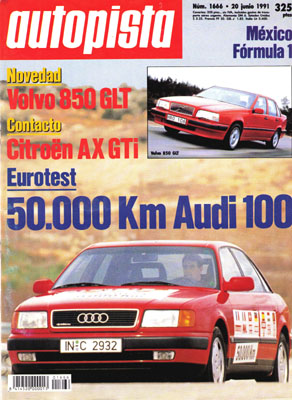Prueba de 50.000 km con el Audi 100. Contacto con el Citroën AX GTi. Prueba Comparativa: Peugeot 605 SVi/Volvo 940 Royal. 24 Horas de Le Mans. Prueba del Citroën ZX Raid. Rallye de Orense. Raid Alta Alcarria. Gran Premio de México de F1.