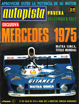 Las novedades Mercedes para 1975. Viaje en un carromato de gitanos por el Jura Suizo. Primera prueba del Volkswagen Golf. El Super-Duper Corvette de Greewood, primer prototipo silueta americano. Juan Fernández. Gran Premio de Gran Bretaña de F1.
