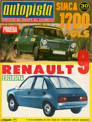 Bocetos del futuro Renault 14. Seat 132 Diesel, "Mejor Coche del Año" 1974. Prueba del Simca 1200 GLS. El Daimler de plata del Maharaja de Rewan. Campeonato del Mundo de Rallyes. Rallye Costa del Sol.