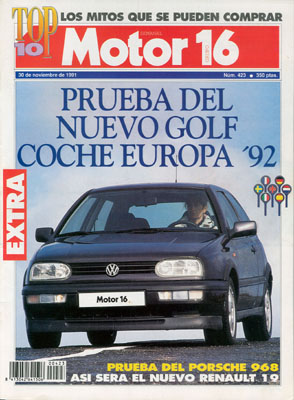 Volkswagen Golf, Coche del Año en Europa. Prueba del Volkswagen Golf VR6. 10 mitos del automóvil. Prueba del Porsche 968. Al volante del Toyota 4Runner V6. Entrevista con Nobuhiko Kawamoto, presidente de Honda.