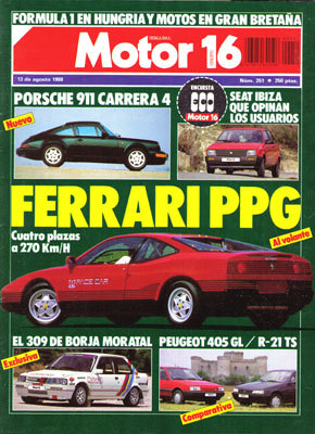 Al volante del Ferrari PPG. Nuevo Porsche Carrera 4. El túnel del Guadarrama. Los usuario opinan sobre el Seat Ibiza. Prueba Comparativa: Peugeot 405 GL/Renault 21 TS. Antonio Palomo, un manitas de plata. Al volante del Peugeot 309 GTi Gr.A. Rallye de Madeira. Rallye de Argentina. G.P. de Hungría de F1.