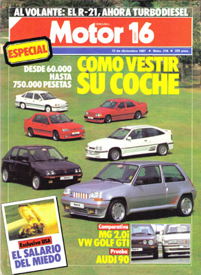 Entrega de los Premios Motor 16. Kits desde 60.000 hasta 750.000 pts. Prueba del Audi 90 2.2 E. Prueba Comparativa: MG Maestro/Volkswagen Golf GTi. Fuera de serie: Porsche 935 Daytona dp Motorsport. Prueba de la Gilera KK 125. Auto Retro de Barcelona. Un