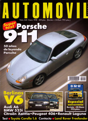 Prueba del Porsche 911 Carrera. 50 Aniversario de Porsche. Alfa Romeo 156: Coche del Año 1998. Prueba Comparativa: Citroën Xantia V6/Peugeot 405 V6/Renault Laguna V6 Initiale. Prueba Comparativa: Audi A6 2.4 V6/BMW 523i. Prueba del Toyota Corolla 1.6 3p Línea Terra. Rallye RAC y temporada 1997. Rallye París-Granada-Dakar ´98. 20 años de Fórmula 1. Cisitalia-Porsche 360 de 1947.