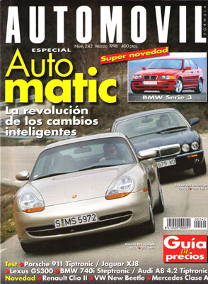 ESPECIAL AUTOMATICOS. Prueba Comparativa: Jaguar XJ8 4.0 Sovereign/Porsche 911 Carrera Tiptronic. Prueba del Lexus GS300. Prueba Comparativa: Audi A8 4.2 Quattro Tiptronic/BMW 740i Steptronic. Técnica: transmisiones automáticas. Prueba del Seat Arosa 1.4i Automático. Fórmula 1: los equipos de 1998. Rallye de Montecarlo y Suecia. Historia: 20 años de Mundial de Rallyes. Buick Century Riviera Hardtop Sedan de 1956.