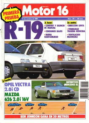Nuevos Mercedes SL. Prueba de la gama Renault 19. Prueba del Opel Vectra 2.0i CD. Prueba del Mazda 626 2.0i. Ferrari GTO a escala, por Zender. Europeo de camiones.Rally San Froilán.
