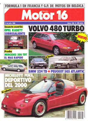 Prueba del Mercedes 300 TD Turbo. Al volante del Volvo 480 Turbo. Al volante el Michelotti Pura. Prueba del BMW 524 TD. Prueba del Peugeot 505 Atlantic. Los usuarios opinan sobre el Opel Kadett. Los Cadillac de los 50. G.P. de Francia de F1. G.P. de Bélgica de Motociclismo.