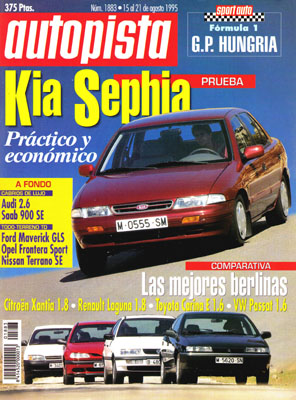 Prueba del Kia Sephia GTX. Prueba Comparativa: Citroën Xantia 1.8 16v/Renault Laguna 1.8 RT/Toyota Carina E 1.6 XLI/Volkswagen Passat 1.6 CL. Prueba Comparativa: Audi Cabrio 2.6/Saab 900 Cabrio 2.5 V6. Joven diseño español. Prueba Comparativa: Ford Maverick GLS 2.7 TD/Nissan Terrano II SE 2.7 TD/Opel Frontera Sport 2.7 TDI. Juan Viladelprat, director del equipo Benetton de F1. Ford Mondeo V6 CET.