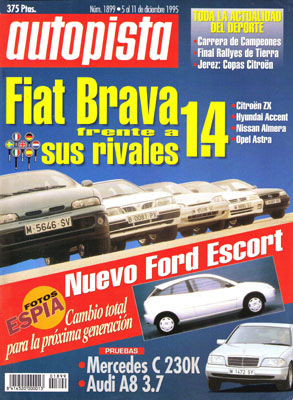 Prueba Comparativa: Fiat Brava 1.4 SX/Citroën ZX 1.4 Tonic/Hyundai Accent 1.3 GLS/Nissan Almera 1.4 S/Opel Astra 1.4 GL. Prueba del Audi A8 3.7 Quattro. Autoanálisis: BMW Serie 3. Atención al automovilista de toda Europa. I Salón Internacional de Atenas. Prueba del Mercedes C230 Kompressor. Nuevo Lamborghini Diablo Roadster. Rallye de Tierra Segura Viudas.