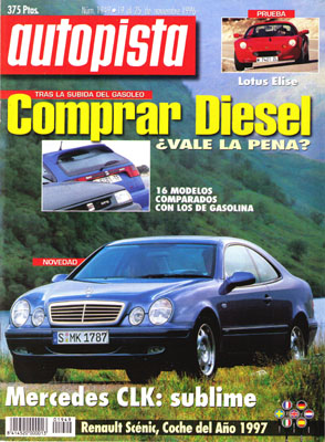 Prueba del Lotus Elise. Dossier: gasolina o diesel, 32 modelos a examen. Presentación del Mercedes CLK. Prueba Comparativa: Lancia Kappa 2.4 TD LS/Volvo 850 TDI. Los coches más robados. Renault Scenic, Coche del Año 1997. Salón Auto Retro de Barcelona 1996. Entrevista a Jordi Gené. Rallye RAC de Gran Bretaña.