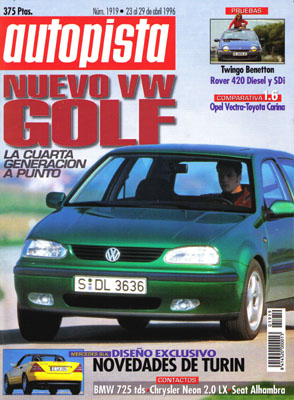 Contacto con el nuevo Seat Alhambra. Anticipación del Volkswagen Golf IV. Avance del Salón de Turín. Diseño: Mercedes SLK. Contacto con el Chrysler Neon 2.0 LX. Prueba Comparativa: Rover 420 D 5p/420 SDi. Prueba Comparativa: Opel Vectra 1.6 16v/Toyota Carina E 1.6 XLi. Prueba del Renault Twingo Benetton. Cómo matricular un vehículo histórico. Trofeo RACE de turismos.