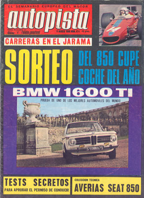 Prueba en el Jarama. Prueba del BMW 1600 TI. Jean Pierre Beltoise prueba el prototipo Peugeot C.D. Las averías más frecuentes en el Seat 850 (III).