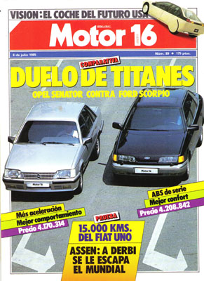 LA ESPAÑA DEL 600 (1966) Escribe Jesús Torbado. Prueba Comparativa: Ford Scorpio 2.8 Ghia/Opel Senator 3.0 CD. Jóvenes diseñadores, por Francisco Podadera. Viajes: Trevélez, el techo de España. 15.000 Km con un Fiat Uno 70 S. Prueba de la MZ-ETZ-250-Luxus. Rallyes de tierra.