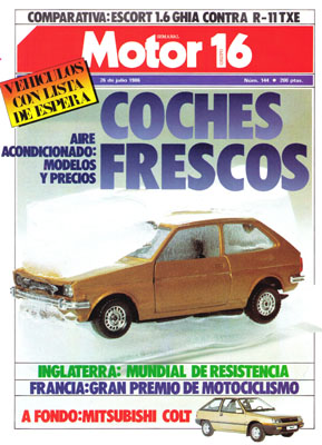 Fotos espía del Ferrari 412i Cabrio. Especial aire acondicionado. Prueba del Mitsubishi Colt 1.5 GLX. Prueba Comparativa: Ford Escort 1.6 Ghia/Renault 11 TXE. El Ferrari Daytona de "Corrupción en Miami". Resistencia en Brands Hatch.