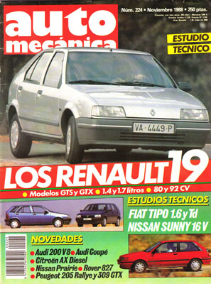 Estudio técnico: Renault 19 GTS y GTX. Estudio técnico: Fiat Tipo 1600 y Turbodiesel. Nuevo Audi V8. Estudio técnico del Nissa Sunny GTi 16v. La seguridad en Mercedes. Técnica: la combustión. Nuevo Audi Coupé. Motores Diesel menos contaminantes. Fórmula Opel Lotus.