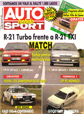 Prueba Comparativa: Renault 21 Turbo/Renault 21 TXI. Prueba del Mazda RX-7 Cabrio. Competiciones en el Circuito de Jerez. ESPECIAL XIV Rallye Internacional Villa de Llanes (programa oficial). Raid V Centenario. Gran Premio de Mónaco de F1. Pruebas regionales. Visita a las instalaciones de Goodyear en Europa.