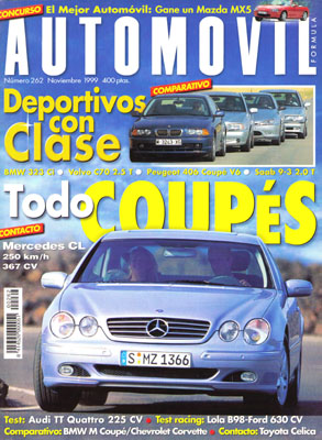 Prueba Comparativa: BMW M Coupé/Chevrolet Corvette. Prueba del Audi TT 1.8 Turbo Quattro 225 CV. Prueba Comparativa: BMW 328 Ci/Peugeot 406 Coupé V6/Saab 9-3 2.0 Turbo Coupé/Volvo C70 2.5 T. Contacto con el Mercedes CL. Prueba del Fiat Punto 1.9 JTD. Gran Premio de Europa y Malasia de F1. Prueba Racing del Lola B98-Roush Ford. Rallye San Remo. Seat 850 Coupé y Spider.