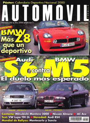 Prueba Comparativa: Audi S6/BMW M5. Nuevo Audi RS4. Contacto con el BMW Z8. Prueba del Volkswagen Lupo TDI 3L. Contacto con el AC Ace. Mundial de Rallyes: Montecarlo y Suecia. Fórmula 1: los equipos del 2000. Pedro Martínez de la Rosa. París-Dakar-El Cairo. BMW 315/1 Roadster de 1935.