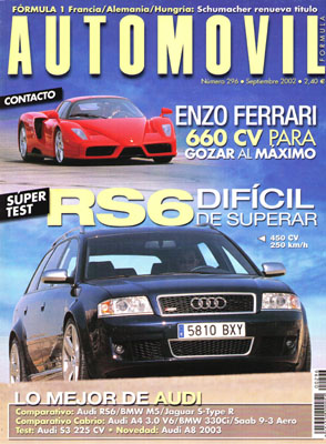 Prueba del Audi RS6 Avant. Prueba Comparativa: Audi RS6/BMW M5/Jaguar S-Type R. Prueba del Audi S3 225cv. Prueba Comparativa: Audi A4 Cabrio 3.0 V6/BMW 330 Ci Cabrio/Saab 9-3 Aero Cabrio. Nuevo Audi A8. Contacto con el Ferrari Enzo. Prueba Racing del Hyundai Accente WRC Evo3. Rallye de Finlandia. Rallye Rías Bajas. Fórmula 1: Gran Premio de Francia, Alemania y Hungría. Baja España-Aragón.