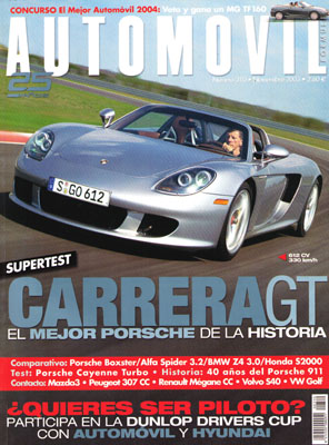 Gran Prueba Comparativa: Porsche Boxster/BMW Z4/Alfa Romeo Spider V6/Honda S2000. Prueba del Porsche Cayenne Turbo. Historia: 40 años de Porsche 911. Prueba del Porsche Carrera GT. Contactos: Peugeot 307 CC, Renault Mégane CC, Volkswagen Golf, Mazda 3, Volvo S40. Fórmula 1: G.P. de EE.UU. y Japón y temporada 2003. Campeonato de España de GT: Jerez. Rallye San Remo y Córcega. Rallye Vasco-Navarro.