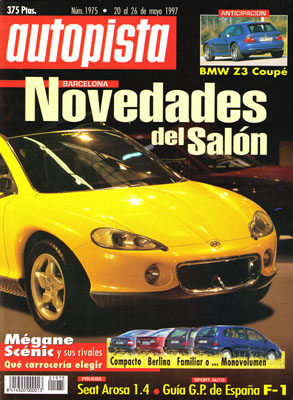 Salón de Barcelona. Reglamento de conductores. Contacto con el Daewoo Lanos. Prueba Comparativa: Renault Scénic 1.6/Nissan Almera 1.6 4p/Honda Civic 1.5 5p/Citroën ZX TD Break. Prueba del Seat Arosa 1.4 Star. Prueba del SsangYong Musso E32. Los límites de velocidad a debate. Anticipación del BMW Z3 Coupé. Avance del GP de España de F1. Copas y Fórmulas Renault. Rallye CajaCantabria. La gama Volvo.
