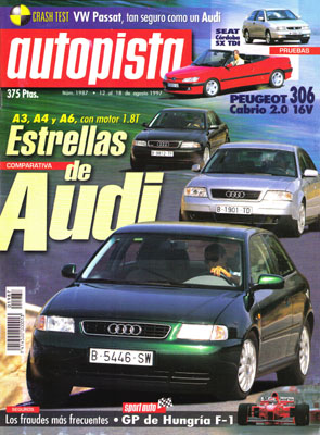 Prueba Comparativa: Audi A3/A4/A6 con motor 1.8 Turbo. Prueba del Peugeot 306 Cabriolet 2.0 16v. Prueba del Seat Córdoba SX TDi. Crash test del Volkswagen Passat. Los fraudes en los seguros. Informe: las empresas más poderosas del mundo. Nuevo Lexus LS400. Rallye de Nueva Zelanda. F1 en Hungría.