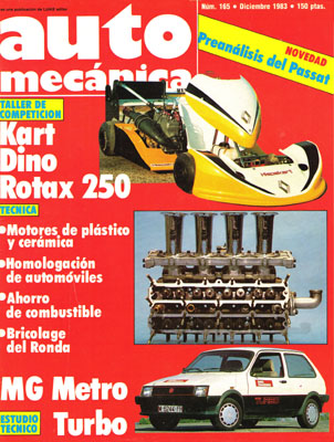 Prueba del MG Metro Turbo. Técnicas de homologación de automóviles. Los motores de plástico y cerámica. Kart Dino-Rotax 250. Bricolaje: Seat Ronda. Novedades: Fiat Uno-Matic 70, Volkswagen Passat, Citroën CX Turbo Diesel y GTi. Consultorio técnico.