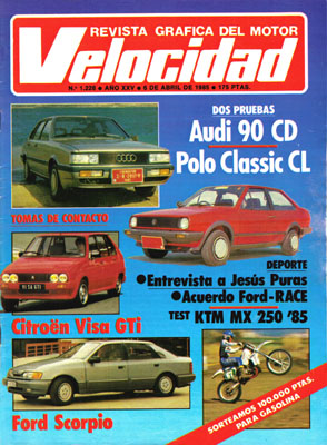 Prueba del Volkswagen Polo Classic CL. Los Chevrolet del ´85. Toma de contacto con el Ford Scorpio. Prueba del Audi 90 2.2. Toma de contacto con el Citroën Visa GTi. Prueba de la KTM MX 250 ´85. Campeonato de España de Rallyes. Entrevista con Jesús Puras.