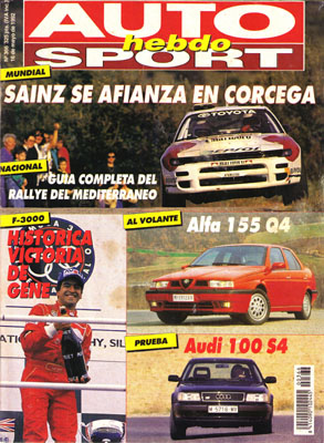 Nuevo Alfa Romeo 155 Q4. Prueba del Audi 100 S4. Clásicos: Renault 8 TS. Gran Premio de España de F1. Sport-Prototipos en Silverstone. Jarama: Día Internacional Renault. Tour de Corse. Todas las pruebas regionales. XXIV Rallye Mediterráneo-Costa Blanca.