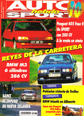 Presentación del BMW M3. Nuevos Citroën ZX Turbo D Aura y Mazda Xedos 6. Clásicos: Dodge 3700 GT. XXIV Rallye Osona. Rallye RACE-Santander. Carreras en el Circuito de Albacete. Cómo se ganan las 24 Horas de Le Mans. Rallye Villa de Gijón. Fórmula 1: el automóvil como modelo matemático.