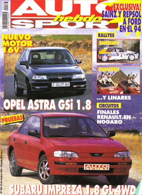Prueba del Subaru Impreza 1.8 GL 4WD. Prueba del Opel Astra GSi 1.8 16v. XII Rallye de los Faraones. Finales Renault en el Circuito de Nogaro. VII Rallye de Linares. Rallye Sanremo. Todas las pruebas regionales.