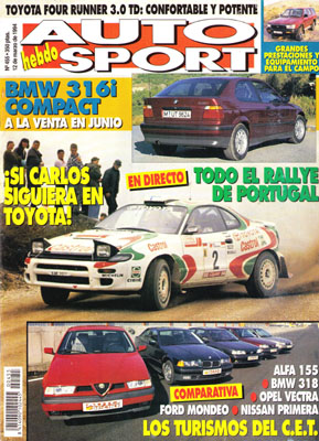 Nuevo BMW 316i Compact. Prueba Comparativa: Alfa Romeo 155 TS 2.0/BMW 318iS/Opel Vectra 2.0 16v/Nissan Primera 2.0 GTe/Ford Mondeo 2.0. Prueba del Toyota Four Runner 3.0 TD. Rallye de Portugal. Campeonato de Espeña de Rallyes. Presentación de Teo Martín Motorsport. Fórmula 3000, balance.