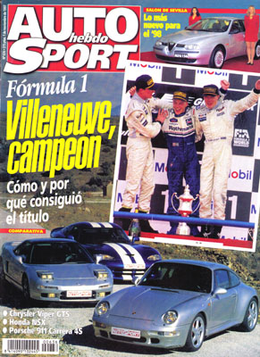 Al volante del Volvo V70 XC AWD. Espectacular Prueba Comparativa: Honda NSX/Porsche 911 Carrera 4S/Chrysler Viper GTS. Al volante del Hyundai Accent 1.5 GT. III Salón del Automóvil de Sevilla. Gran Premio de Europa de F1. Tests pretemporada de Citroën. Nissan Almera Kit Car. Todas las competiciones regionales. Autocross en Sils. Nacional de Montaña: Ibiza.