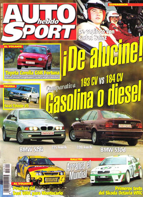 Prueba Comparativa: BMW 530d/528i. Prueba del Fiat Bravo 2.0 20v HGT. Prueba del Seat Toledo V5. Prueba Comparativa: Seat Toledo V5/Alfa Romeo 156 2.0 TS. Salón del Automóvil de Valencia. Nuevo Mercedes Benz CL. Al volante del Toyota Corolla G6R Fortuna. Fórmula 1: ensayos en Jerez. Reportaje: copiloto de Carlos Sainz. Novedad racing: Skoda Octavia WRC. Tests Seat en Andorra. Final del Trofeo Lamborghini en Vallelunga.