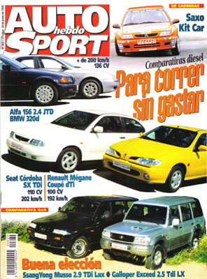 Prueba Comparativa: Renault Megane Coupé dTi/Seat Cordoba SX TDi. Prueba Comparativa: BMW 320d/Alfa Romeo 156 2.4 JTD. Prueba Comparativa: Galloper Exceed LX/Ssangyong Musso 2.9 TDi Lux. Rallye Acrópolis. Raid Alta Alcarria. Avance pruebas en el Circuito de Jerez. Prueba racing del Citroën Saxo Kit Car.
