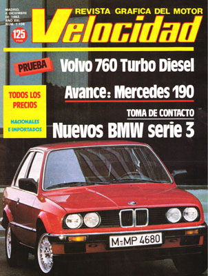 Prueba del Volvo 760 GLE Turbo-Diesel. 18 metros de coches estáticos. Toma de contacto con los nuevos BMW serie 3. Inminente aparición del Mercedes 190. Rallye Cataluña: victoria y título para Zanini.Test de la BMW R-80 GS París-Dakar.