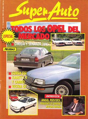 ESPECIAL OPEL. Prueba Comparativa: Opel Omega 3000/Opel Senator 3.0 CD 24v. Prueba del Opel Senator CD 3000 24v. Prueba del Opel Omega 3000 24v. Prueba del Opel Kadett Cabrio 1.6 S. Prueba del Opel Kadett 1.4 LS 5 p. Prueba del Opel Vectra GT. Prueba del Opel Corsa GSi. Prueba del Isuzu Trooper. Prueba de la GME Midi 4WD. Entrevista a Angel Perversi, presidente general de General Motors España. Entrevista a Hermann W. Vermeerbergen, director de marketin de General Motors España. Figueruelas, un gigante aragonés. Historia de Opel. Prueba del Opel GT 1900. Opel Calibra, la evolución del GT. Competición: del Manta al Vectra 4x4. Fórmula Lotus Opel. Los circuitos de la F1.
