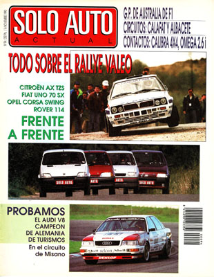 Rallye Valeo. Correo de los lectores. Prueba del Audi V8 Quattro del campeonato alemán de turismos. Rallye Costa de Marfil. Gran Premio de Australia de F1. Rallye d'hivern. Contacto con el Honda NSX. Campeonato de España de Velocidad en Calafat. Prueba del Maserati 222. Prueba Comparativa: Citroën AX 14 TZS/Fiat Uno 70 SX/Opel Corsa Swing/Rover 114. Contacto con el Opel Calibra 2.0i 16v 4x4.