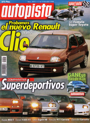 Gran Prueba Comparativa: Chevrolet Corvette/Ferrari F355 F1/Honda NSX-T/Lotus Esprit V8/Porsche 911 Carrera. Contacto con el nuevo Mazda MX-5. Prueba del Renault Clio 1.4 RT. BMW se hace con el control de Rolls-Royce. Consultorio del lector. Contacto con el Ferrari 456M GTA. Vuelta a España en 83 horas. Prueba del Fórmula Súper Toyota.